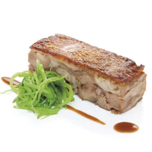 Cochinillo cocinado a baja temperatura, listo para calentar y servir.